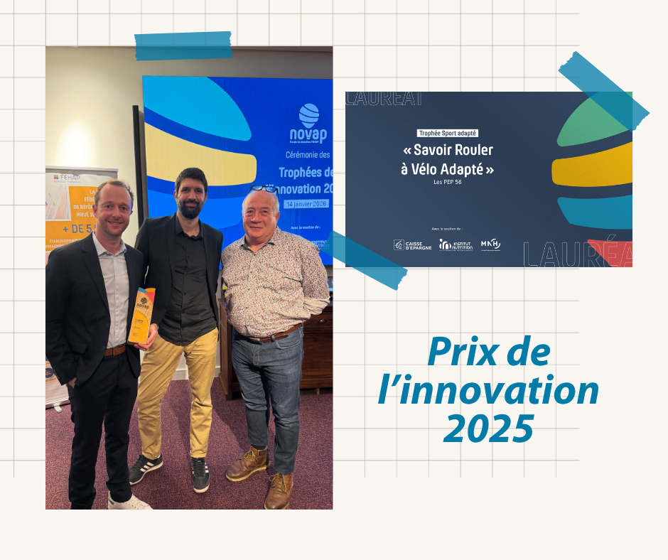 Pour l’édition 2025, nous avons été récompensés dans la catégorie Sport adapté pour notre projet SRAV – Savoir Rouler à Vélo adapté. Parmi une centaine de dossiers déposés, notre projet fait partie des 5 lauréats, une belle reconnaissance pour un dispositif qui favorise l’autonomie, la mobilité et l’inclusion grâce à la pratique du vélo adapté.